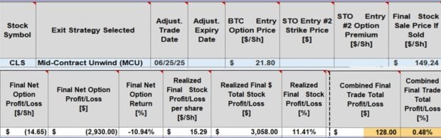 - In the case of CLS, closing the trade and executing another covered call was a reasonable path